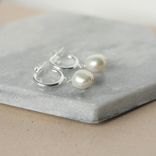 Small Sterling Silver and Baroque Pearl Hoop Earrings