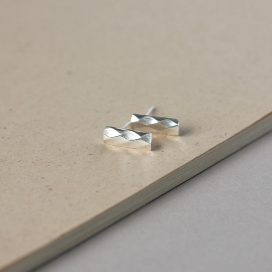 Faceted Silver Bar Stud Earring