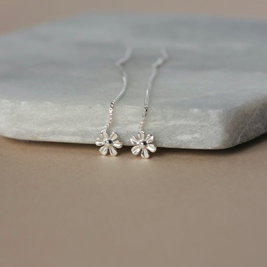 Sterling Silver Flower Threader Earrings