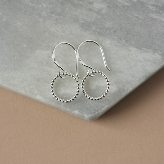 A collection of stylish everyday earrings in silver, gold and brass that includes dainty stud earrings, linear dangles, and sleek geometric designs.